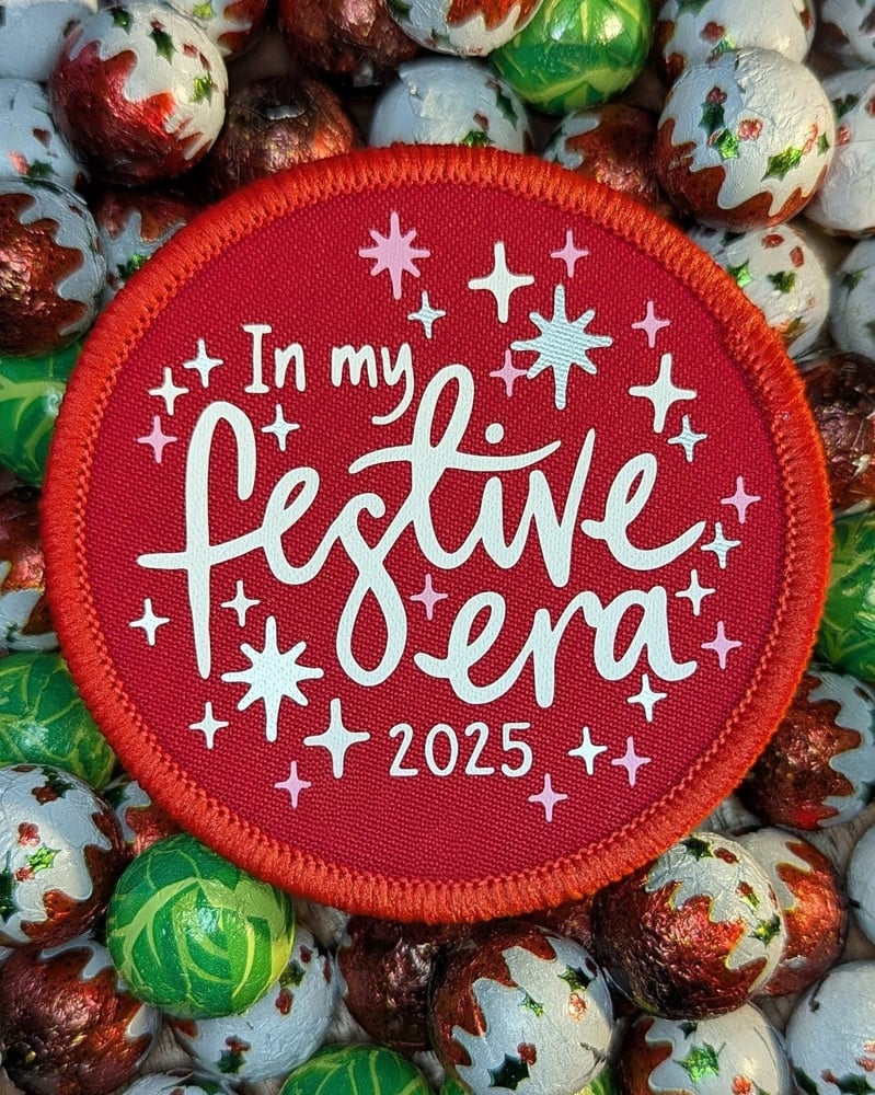 This red patch features white text and lots of white, silver & pink twinkles - it measures 8cm in diameter.