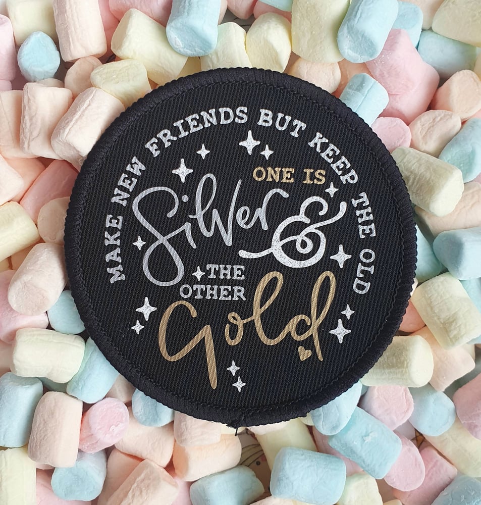 This patch with metallic and glittery print is the fifth in my campfire songbook series, perfect for new friends and old friends alike.